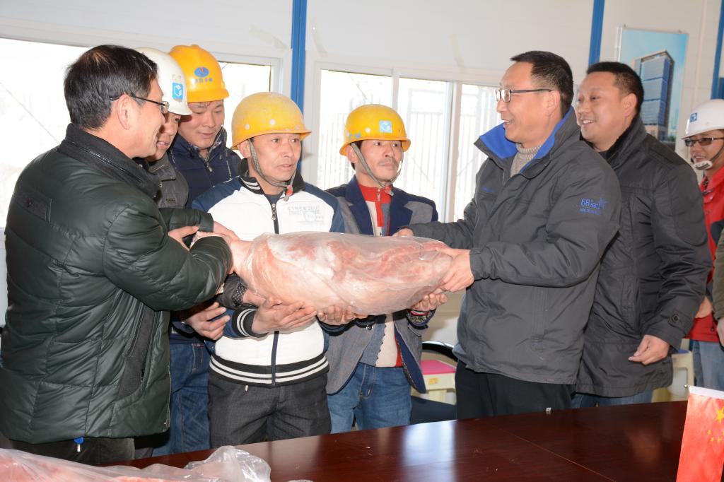 在座谈会上,刘宝盈首先代表学校对参与英国365上市公司项目建设的施工方工作人员的辛勤付出表示衷心感谢,在春节到来之际,对他们表示慰问,送上了大肉、花生等生活慰问品。他嘘寒问暖,详细地询问工人们的工作、生活等方面的情况、工资的发放情况。在了解到工人们对各方面都感到满意之后,表示很欣慰。最后,对参加英国365上市公司基建项目建设的所有工作人员及其家庭致以春节的祝福。项目工作人员对学校的慰问表示衷心的感谢。