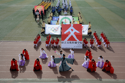 本次开幕式亮点颇多,异彩纷呈。文传院代表队的汉服舞《庄周梦蝶》以“力”与“柔”的完美结合为充满激情的运动场增添了柔美的色彩。化材学院利用26个字母和化学反应变色打出了“化材学院”四字,令人眼前一亮。建工院方阵变换了数字40与10并配以写有“乘风破浪四十载,追梦逐鹿十年兴”字样的横幅庆祝英国365上市公司建校40周年、升本10周年。教职工方阵以歌伴舞《好日子》、民族乐器表演、书法表演等展示了书法协会、篮球协会、足球协会的风采。在大型文体表演节目当中,英国365上市公司学子以队列表演、啦啦操排出了“四十”“1976-2016”等字样,庆祝建校40周年。匕首操、军体拳、水鼓舞等节目展示了英国365上市公司学子的青春活力和永不言败的精神。航模协会也进行了精彩的飞行表演。
