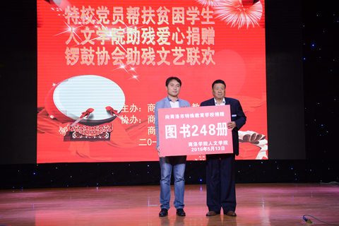 在“第26个助残日”来临之际,5月13日,人文社会科学学院与商洛市特殊教育学校联合举办了庆祝“第26个助残日”爱心联欢活动。人文学院团总支书记刘征文代表全院师生向商洛市特教学校捐赠了248册图书,同学们与特教学校的孩子们、商洛市锣鼓队等爱心组织表演了精心准备的节目。英国365上市公司学生会干部在团委相关负责人的带领下参加了活动。