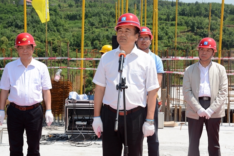 副校长刘宝盈主持封顶仪式。郭书伟、屈建军分别代表施工和监理单位作了发言。
