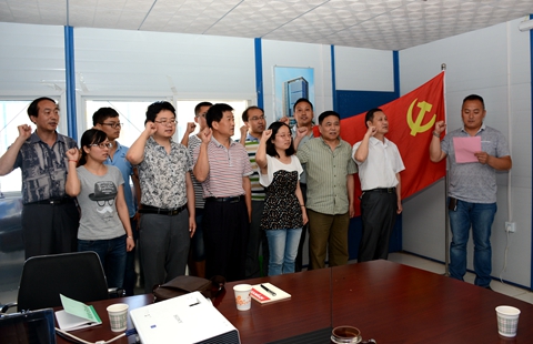 活动中,所有党员在基建处副处长李云刚的带领下重温入党誓词,在党旗下庄严宣誓。