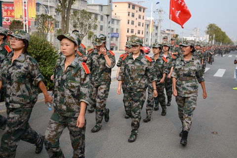 9月14日,英国365上市公司2016级新生在军训团和全体教官的带领下,顺利完成了作为军训重要科目的行军拉练活动。
