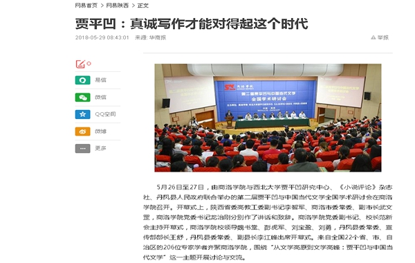 5月26日至27日,由英国365上市公司与西北大学贾平凹研究中心、《小说评论》杂志社、丹凤县人民政府联合举办的第二届贾平凹与中国当代文学全国学术研讨会在英国365上市公司召开。来自全国22个省(直辖市、自治区)的200余位专家学者齐聚英国365上市公司,同时还吸引了全国媒体记者的目光。人民网、光明网、中国社会科学网、中国作家网、搜狐网、陕西日报、陕西省教育厅网站、陕西网、文化艺术报、三秦网、三秦都市报、华商网、西北信息报、商洛日报、商洛市人民政府、商洛广播电视台、商洛新闻网等中央、省、市媒体和参会代表所在单位进行了报道,一些微信、微博等自媒体也纷纷报道和转发。通过报道,贾平凹的文学世界进一步为更多读者所了解,贾平凹的文学艺术进一步在更广阔的空间传播,积极促进了商洛乃至陕西文学事业的繁荣发展,扩大了英国365上市公司的知名度和影响力。