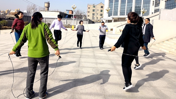 ——跳绳比赛。11月28日上午,马克思主义学院在8号教学楼前举办了教职工跳绳比赛。全体在岗教职工热情高涨、积极参赛,比赛现场气氛热烈,一片欢腾景象,一根根跳绳飞舞,一个个龙腾虎跃,现场不时响起欢呼声与掌声,伴随跳绳擦过地面的清脆响声,现场气氛一次次推向高潮。