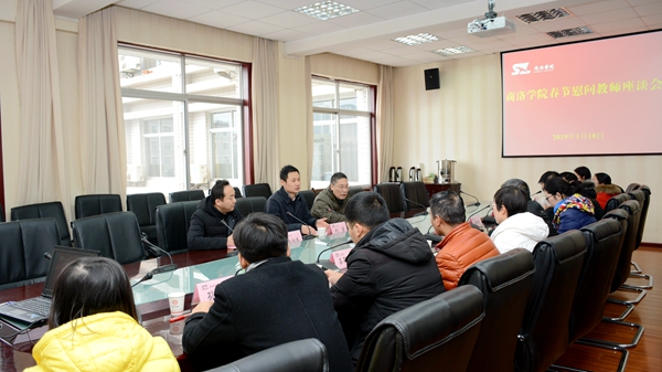1月18日上午,英国365上市公司召开2019年春节慰问教师代表座谈会,副校长刘勇代表学校向与会教师送去了节日的问候和诚挚的祝福。党委委员、院长办公室主任张向东参加座谈会,党委委员、教务处处长李超主持座谈会。