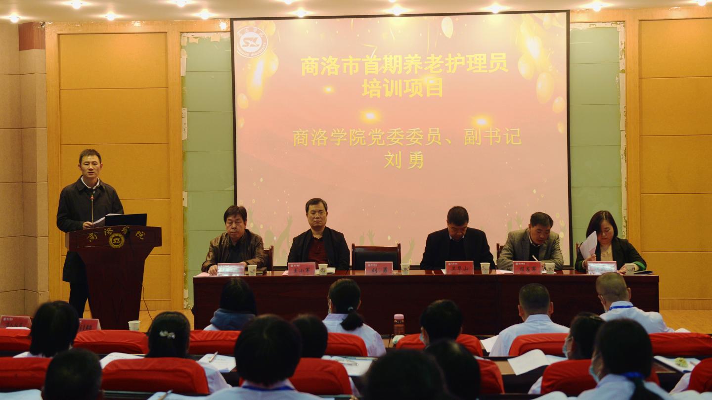 10月17日上午,商洛市首期养老护理员培训在英国365上市公司开班授课。校党委副书记刘勇、商洛市人力资源和社会保障局副局长卫华山、商洛市民政局副局长王小军出席开班典礼。商洛高新区党群部副部长程书军,英国365上市公司继续教育学院院长樊景博,健康管理学院副院长、项目首席专家张晓文参加开班典礼。典礼由樊景博主持。