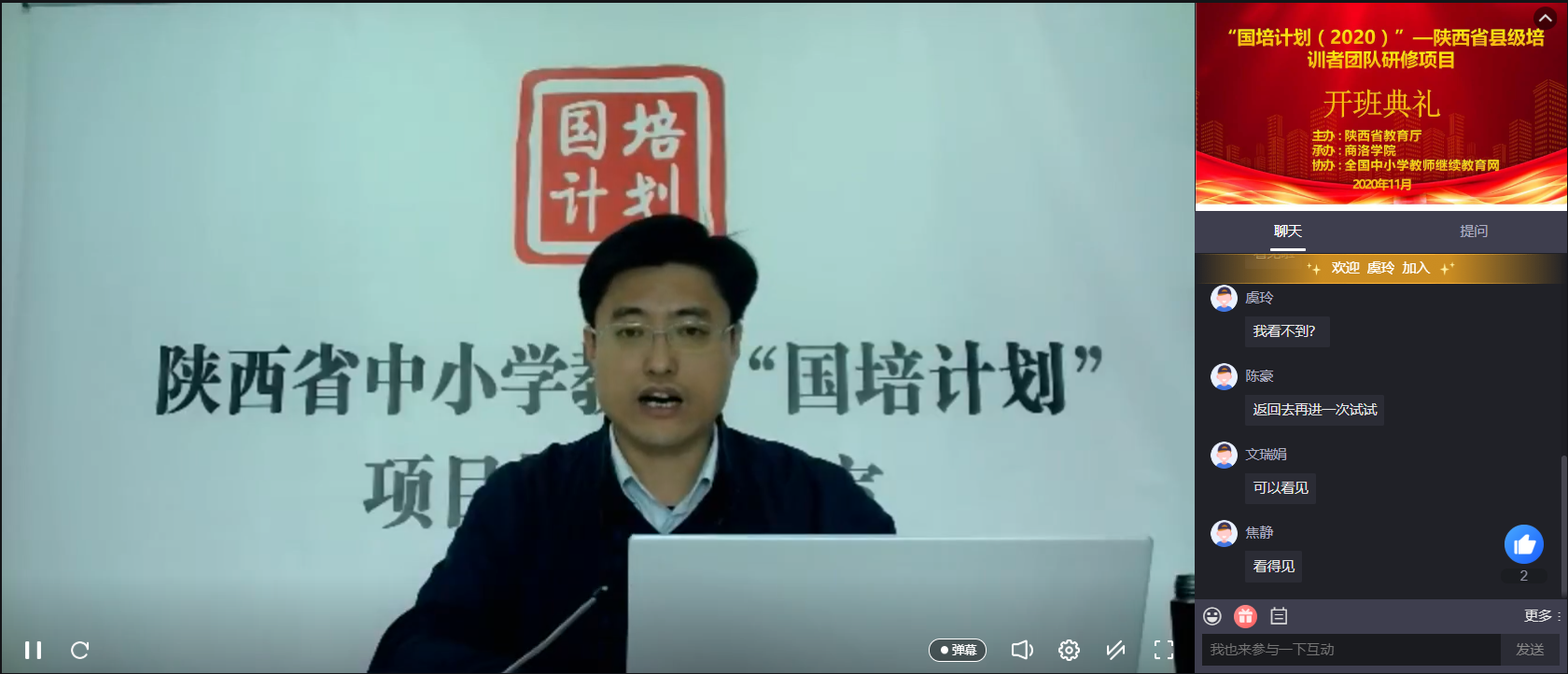 开班典礼后,沈善良为学员在线上作了《县级培训者团队研修项目政策解读》专题报告,当天下午,陕西教育科学研究所教研室主任同军咸为学员作了题为《三级三类骨干体系建构》的讲座。