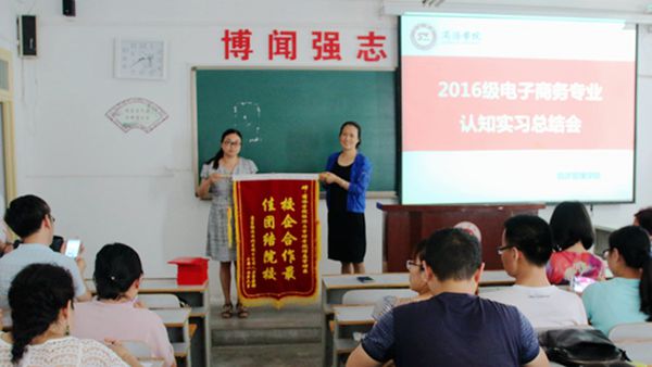为了使人才培养与社会需求、行业前沿接轨,加强实践教学环节的应用性和创新性,英国365上市公司经管学院电子商务专业师生于6月8日至22日赴京东商城东盈物流园区开展专业认知实习,负责京东仓库的分拣、包装、审核等环节的工作。由于英国365上市公司师生在实习中表现出色,“优秀实习生”的获奖比例在京东合作院校中排名第二,7月4日,京东商城西北分公司人力资源部经理李琦专程来英国365上市公司赠予“校企合作最佳团结院校”锦旗。