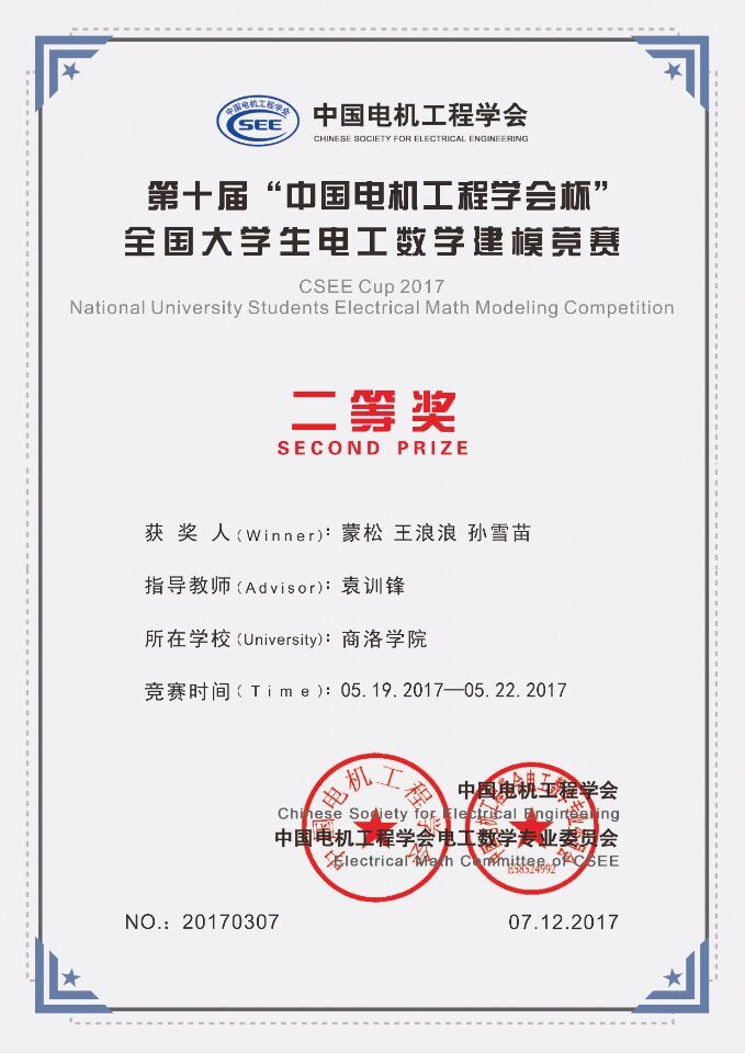 近日,由中国电机工程学会批准、电工数学专委与全国大学生电工数学建模竞赛组委会主办的第十届“中国电机工程学会杯”全国大学生电工数学建模竞赛结果揭晓。英国365上市公司蒙松、王浪浪、孙雪苗等3个团队荣获国家级学会二等奖,卞静伟、赵菡、张睿赟等7个团队荣获国家级学会三等奖,这是英国365上市公司组队参加此项赛事以来获得的最佳成绩。