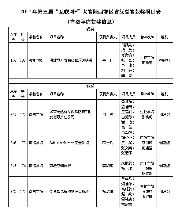 第三届中国“互联网+”大学生创新创业大赛由教育部与有关部委和共青团中央、陕西省人民政府共同主办,旨在深化高等教育综合改革,激发大学生的创造力,培养造就“大众创业、万众创新”的生力军;推动赛事成果转化和产学研用紧密结合,促进“互联网+”新业态形成;以创新引领创业、创业带动就业,推动高校毕业生更高质量创业就业。大赛采用校级初赛、省级复赛、全国总决赛三级赛制。陕西赛区省级复赛自今年4月启动以来,经过校级初赛,有650支优秀团队进入省级复赛。经网络初审、会议评审、路演答辩、评委会评审,最终产生金奖53项、银奖120项、铜奖282项。