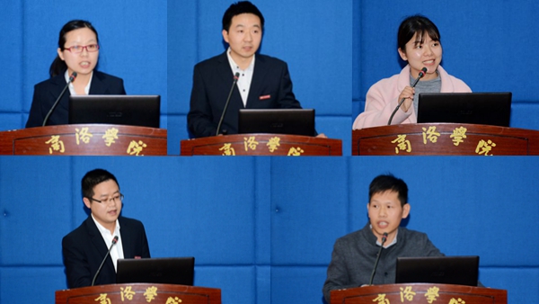 马克思主义学院刘玲霞、化材学院刘彦峰、经管学院李泓波、生物学院梁旭华、人文学院张文诺5位教师代表在大会上就教学实践的体会进行了交流发言。