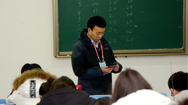 1月2日是本学期期末考试的第一天,1月2日至4日,校领导龙治刚、范新会、王思怀、魏书堂、彭虎军、刘宝盈、刘勇在教务处相关负责人的陪同下深入期末考试考场,视察期末考试工作。
