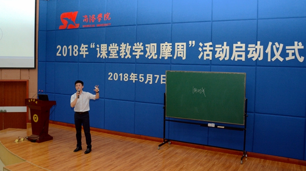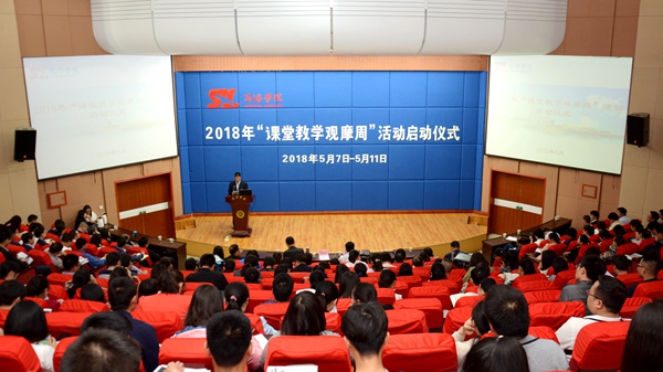 范新会在仪式上作动员讲话。他指出,我们组织开展课堂教学观摩周活动,是对全国高等教育教学改革发展形势的积极响应,是发挥课堂教学主渠道作用提高人才培养质量的落地执行,也是贯彻全国高校思想政治工作会议精神的具体行动。他谈到,课堂教学是“一流学院、一流专业”建设的“主战场”。推进课堂教学改革,培养应用型人才,是提高教学质量、推进“一流学院”建设的关键;课堂教学是巩固立德树人的“主阵地”。要坚持把立德树人作为中心环节,把思想政治工作贯穿教育教学全过程,让课程思政的理念深入课堂,促进学生全面发展,健康成长。要在服务地方经济社会发展的同时,放眼全国,培养适应时代发展需求的各类应用型人才。要积极探索课堂教学与信息化结合的途径,引入外部优质资源,推进课堂教学改革,整体构建符合教育规律、体现时代特征的课程体系;课堂教学是教师学术水平的试金石。教师要想真正的掌控课堂,除了要有真本事,还要有真招数,要研究教学内容,研究教学方法,要设计课堂、组织课堂、管理课堂,要解决好学生“为什么学、学什么、怎么学”的问题,还要研究“为什么教、教什么、怎么教”的问题。