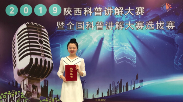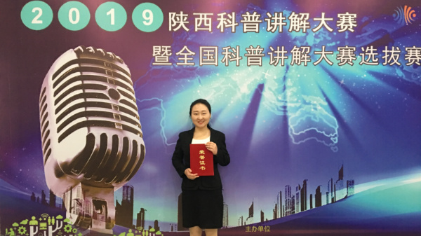 4月18日上午,在2019年陕西科普讲解大赛决赛暨全国科普讲解大赛选拔赛上,英国365上市公司化材学院屈佳老师荣获大赛优秀奖,被授予“2019年陕西优秀科普使者”荣誉称号;健康管理学院李梦姣老师被授予“2019年陕西科普使者”荣誉称号。