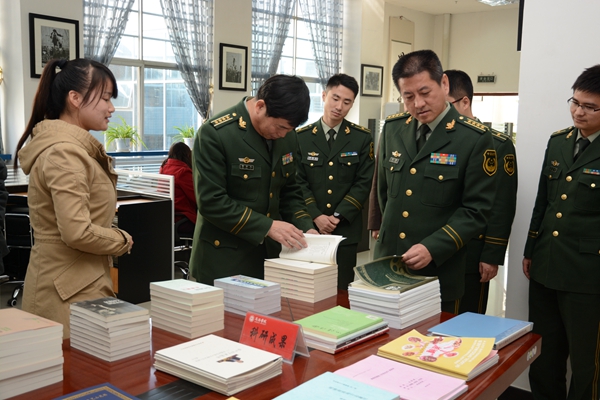 为了增进两校友谊,曹学义代表武警工程大学向商洛红色文化资料馆捐赠了《中国历代军事诗词》等百余册图书。