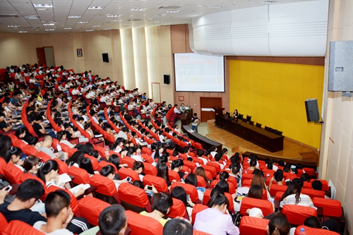 交流期间,杨秋兰为师生作了宣讲报告,并参观了校园环境和特色展厅。