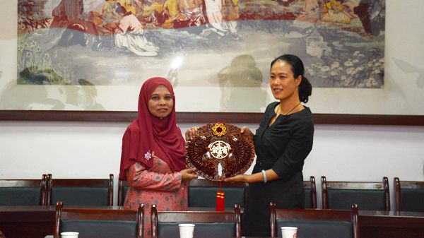 经济管理学院副院长周小婷向Hazlina老师赠送了以商洛核桃为材质的工艺品——“吉庆有余”中国结,祝愿两校之间的合作百尺竿头,更进一步,祝愿两校师生之间的友谊地久天长。