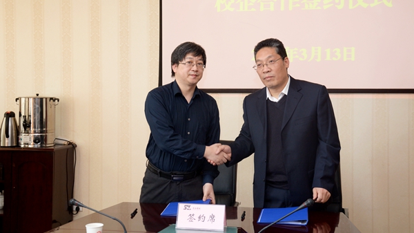 教务处处长李超、学生处处长石启英分别代表学校与广联达科技股份有限公司签订了《365公司校外实践教学基地协议》《365公司大学生就业创业基地建设协议》。