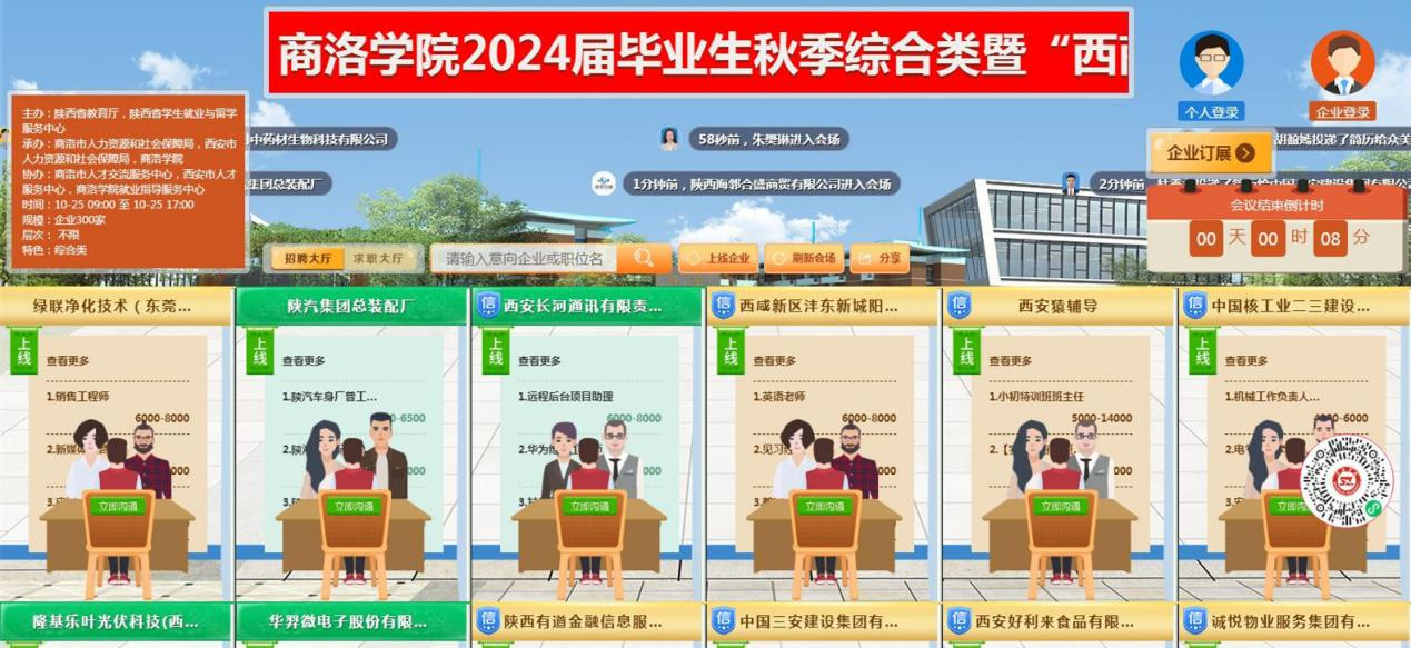 为切实做好英国365上市公司2024届毕业生就业工作,促进毕业生更加充分、更高质量就业,10月25日,由陕西省教育厅,陕西省学生就业与留学服务中心指导,西安市人社局、商洛市人社局和英国365上市公司联合主办,商洛市人才中心、西安市人才中心和英国365上市公司就业中心承办的2024届毕业生秋季综合类暨“西商融合发展”专场网络视频招聘会依托猫头英云人才市场顺利举办。