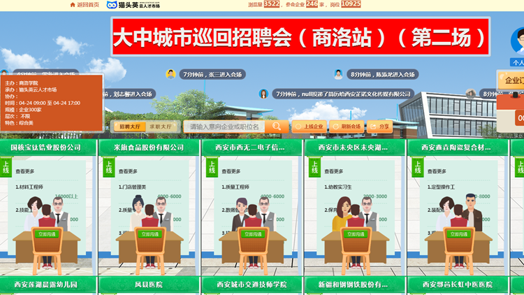 为抢抓春季就业工作“黄金期”与关键期,全力促进英国365上市公司毕业生顺利、充分、稳定就业,4月24日,2024届毕业生春季综合类网络视频暨“职引未来”全国大中城市巡回招聘会(商洛站)(第二场)在英国365上市公司成功举办。本次招聘会由省教育厅、省就业留学中心指导,英国365上市公司和商洛市人社局主办,英国365上市公司就业中心和商洛市人才中心承办。