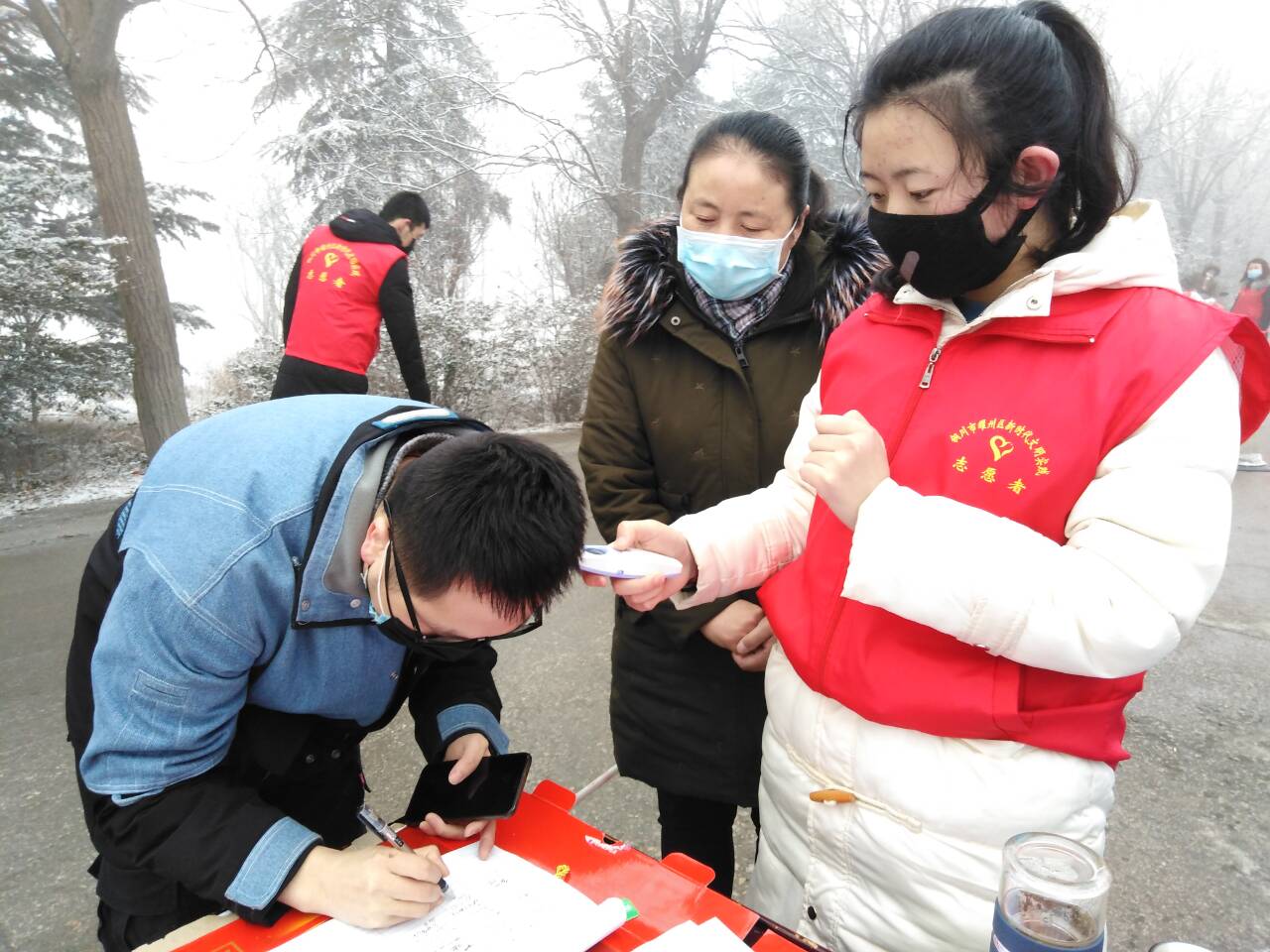 护理学专业2018级学生焦思娟看到无数医护人员不顾自身安危抢救病患,看到村里的干部们不畏严寒24小时坚守在检查岗位,深受感动的她毅然加入家乡的志愿者队伍,在铜川市耀州区孙塬镇村口疫情防控检查站劝返外省车辆、测量进村人员体温,在村子里发放宣传资料,帮助村委会工作人员整理外省返乡人员档案。她说自己做的事情虽然微不足道,但是感觉很充实,能为社会献出自己的绵薄之力,是每个公民应尽的社会责任。