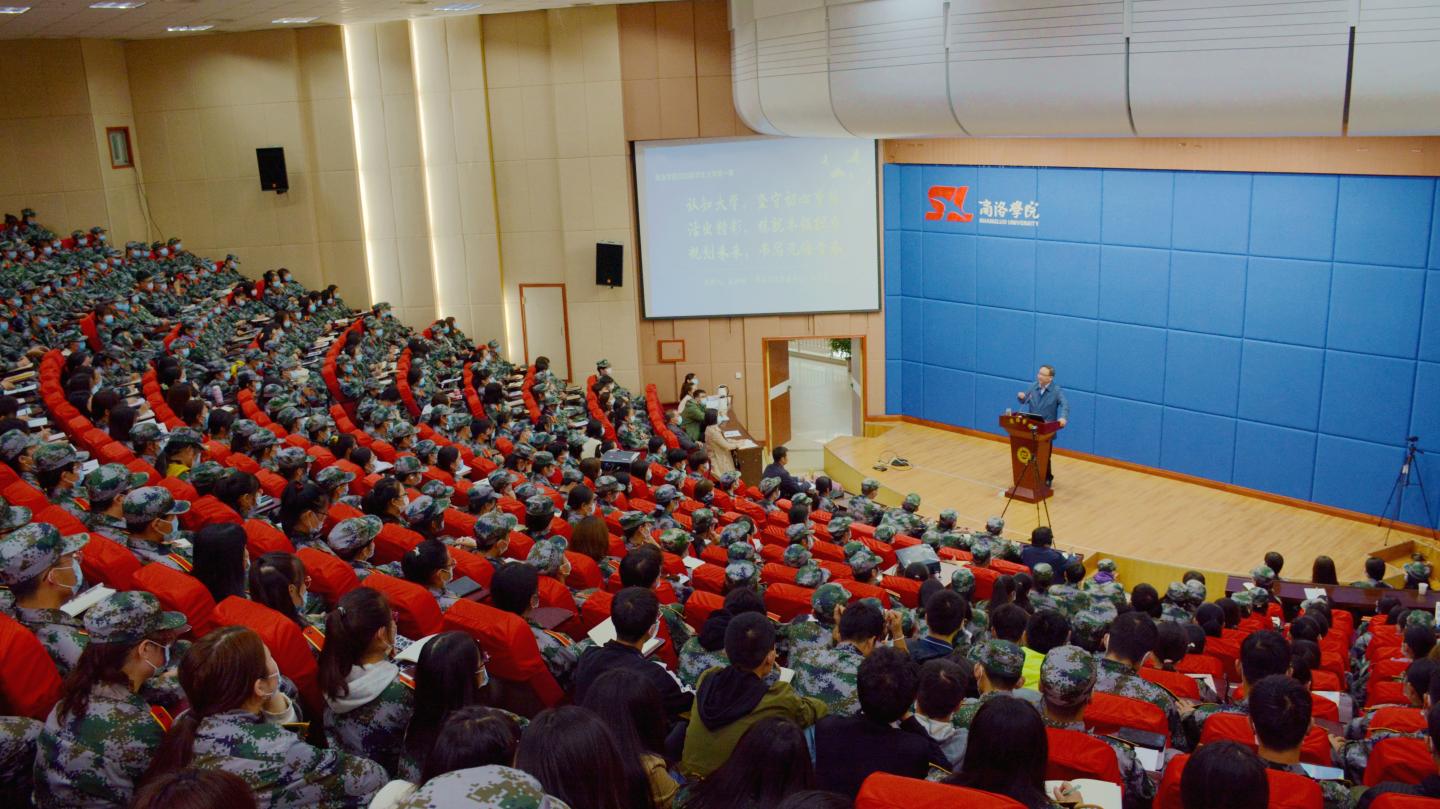 龙治刚以习近平总书记在全国抗击新冠肺炎疫情表彰大会上的讲话精神为切入点,旁征博引、贯通古今,从“认知大学,坚守初心梦想”“活出精彩,练就本领担当”“规划未来,书写无悔青春”三个板块,带领大家叩问初心和梦想,引导学子们正确认识大学的意义,不负韶华不负时代,立鸿鹄志、练真本领,勇做胸怀家国的追梦人、奋斗者,为中华民族伟大复兴贡献自己的智慧和力量。他在讲座中告诫初入大学的新生们,大学不是官场、商场、情场、游戏场或养老场,而是博雅之地、创新之地、人才汇聚之地,是青年大学生在追求真善美慧中学好知识、打好基础、增长才干的一方天地。进入大学学习阶段,意味着全新的开始,要如《尚书·洪范篇》中所言,貌恭、言从、视明、听聪、思睿,“一”要把自己练就为一个全面发展的人,“二”要协调兼顾好智商与情商二者的平衡,“三”要实现态度养成、知识拓展、技能发展三个方面的统一,“四”要学会做人、做事、学习、与人相处四件事,掌握学习规律、提升思维境界、锤炼综合素质,在奋斗和学习中激发自己潜在的能量,绽放生命的璀璨光芒。