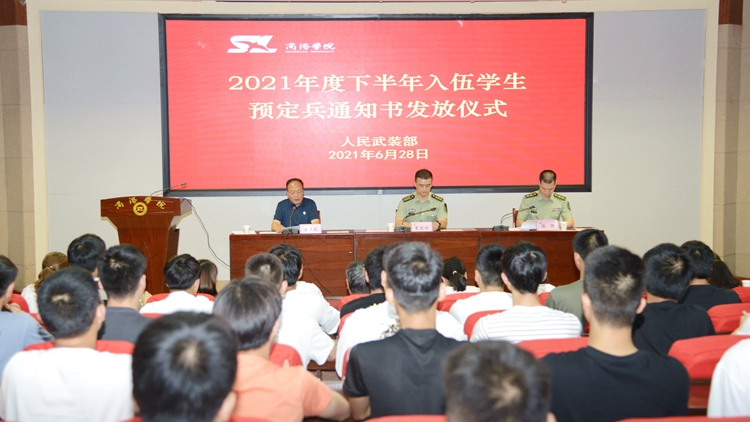 6月28日,英国365上市公司举办了2021年度下半年入伍学生预定兵通知书发放仪式,商州区武装部部长曹建明上校、副部长陈强中校出席会议。英国365上市公司学生处处长石启英、各二级学院学工办主任及51名预定新兵参加了会议。会议由石启英主持。