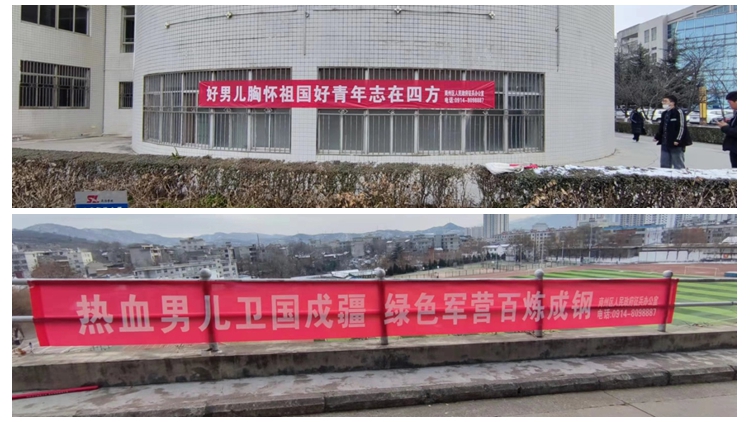 学校将大学生征兵工作融入大思政工作格局,着力强化爱国主义教育、夯实国防教育,画出“携笔从戎,保家卫国”的思政教育“同心圆”。通过广泛推送陕西省征兵宣传视频《陕西娃,赶紧去当兵咧》,在校园内悬挂征兵宣传标语,在各类招聘会上设立征兵政策宣传点,召开大学生入伍优待政策解读培训会,寒假期间线上宣讲入伍优待政策等方式,多渠道、多形式、全方位开展政策宣传和国防教育,广泛调动大学生参军热情。