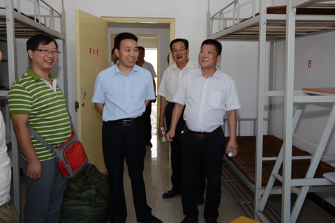 在党政办公室、学生处、招生就业处、保卫处、后勤保障处等相关职能部门负责人的陪同下,范新会一行深入新生接待处、缴费处、户籍办理处、军训服装发放处、学生公寓、银行卡与通信卡办理处等场点,详细检查了各个场点迎新工作部署与开展情况。经过检查,校领导对接待新生的各项准备工作表示满意,并要求各单位通力合作,积极主动、热情周到、扎实细致做好服务工作,让新生及家长能迅速、便捷、舒心地办理入校手续,感受到学校大家庭的温暖。针对迎新期间校内交通调度、卫生清理、志愿者培训等工作,校领导也提出了具体要求。