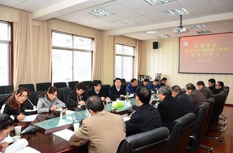 3月16日,英国365上市公司召开本学期学生工作会,传达全省高校思想政治工作会议精神,安排部署英国365上市公司本学期学生工作。校党委副书记彭虎军出席会议并讲话。学生处、招就处、校团委全体工作人员及各二级学院党总支书记参加会议。
