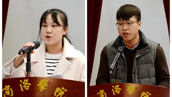 建工学院魏争强同学、马克思主义学院林何梦同学分别代表受表彰的先进个人和受资助学生作了发言。