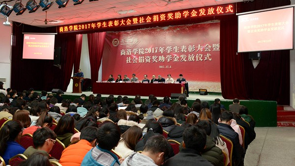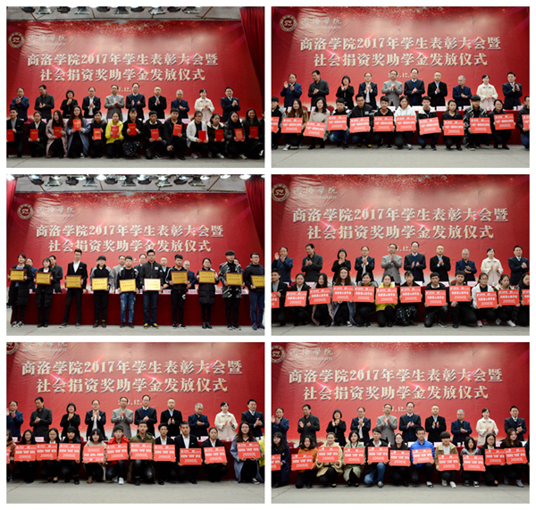 在热烈的掌声中,校领导和主席台嘉宾分别为受表彰的先进个人和先进集体代表颁奖,为受奖受助学生分别发放了“小桔灯-国网电力爱心”助学金、商洛邮政“鸿雁爱心”助学金、商洛联通“沃校园爱心”助学金、商洛电信“天翼爱心”助学金、“森弗爱心”奖助学金、商洛移动“和莘情爱心”助学金,发放金额共计42万元。