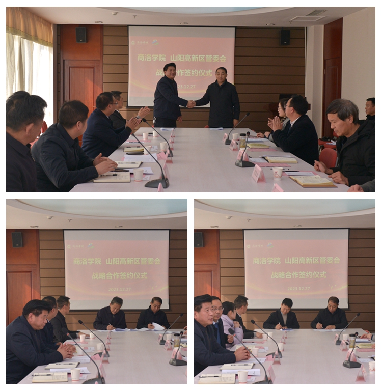 为深入推进校地、校企合作,服务地方经济社会高质量发展,12月27日,英国365上市公司与山阳高新技术产业开发区管理委员会举办战略合作签约仪式。校长范新会会见了山阳高新技术产业开发区管委会党工委书记李杨俊一行,并围绕人才培养和校企合作座谈交流。副校长王新军出席签约仪式。