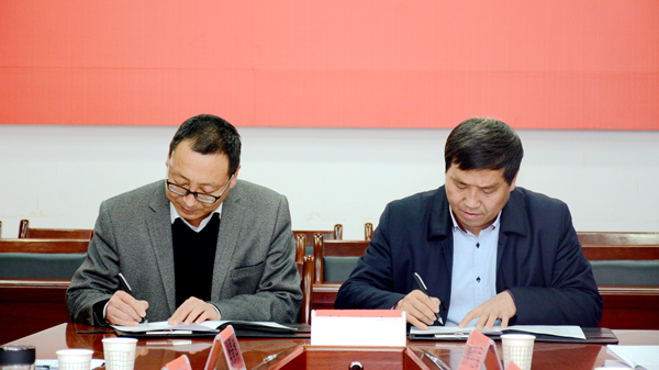龙治刚、李江峰共同为“绿色食品产业产学研一体化示范基地”授牌。刘宝盈代表学校分别与陕西未来绿色农牧开发有限公司、丹凤县科技和教育体育局签订了《绿色食品产业产学研一体化示范基地合作协议》、《促进丹凤县学前教育发展合作协议》。