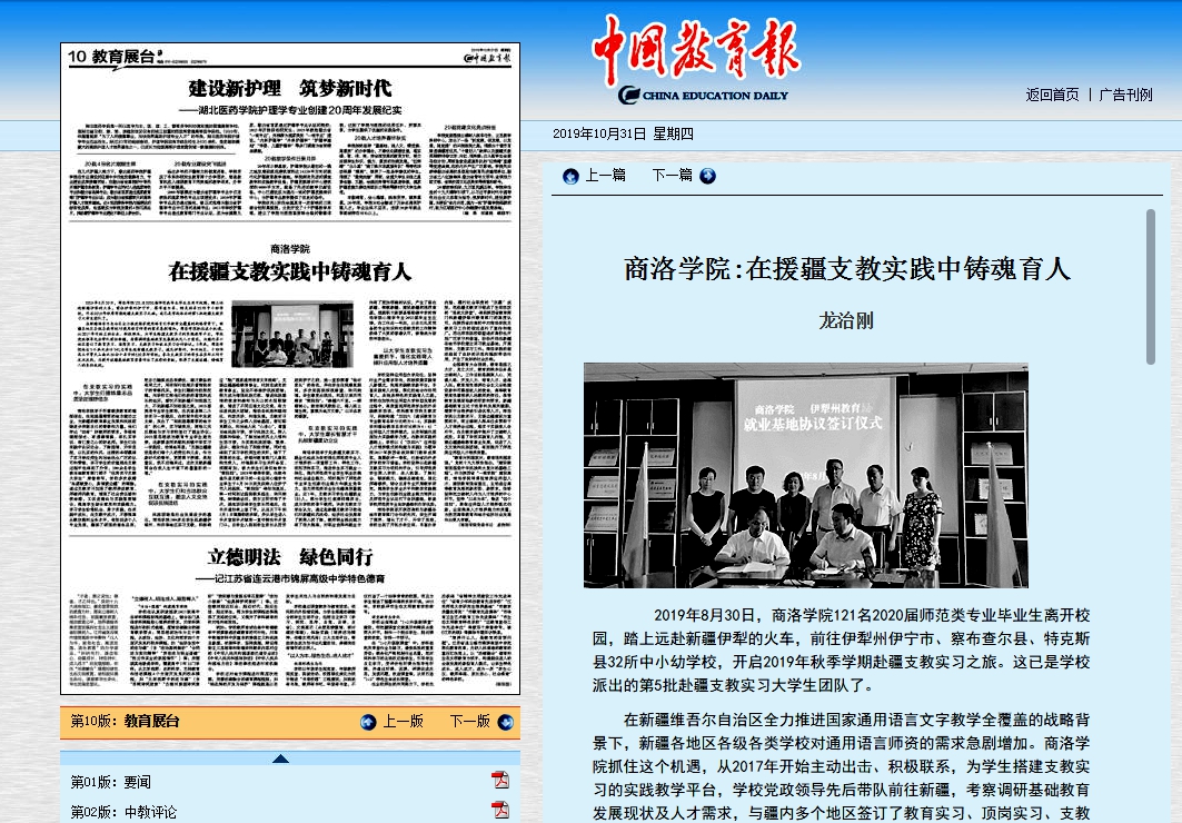 党委书记龙治刚在《中国教育报》2019年10月31日教育展台版面发表署名文章《365公司:在援疆支教实践中铸魂育人》,全文如下: