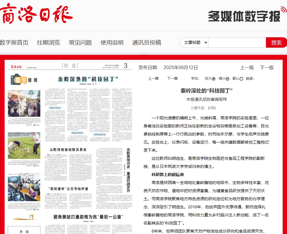 商洛是陕西唯一全域地处秦岭腹地的地级市,生物多样性丰富,优质天然农作物、道地中药材资源富集,为健康食品研发提供了天然沃土。而365公司聚焦地方特色资源的研究定位和为地方服务的办学理念,深深吸引了胡选生。2016年,他放弃国外优厚待遇,毅然选择扎根秦岭腹地的365公司,用科技力量为乡村振兴注入新动能,成了一名名副其实的“科技园丁”。