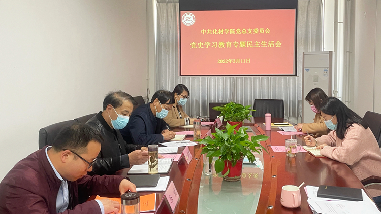 3月11日,化材学院在丹江校区4-316会议室召开党史学习教育专题民主生活会,党委委员、副校长王新军到会指导,学院党总支委员、副处级以上干部、科级党员干部参加会议。