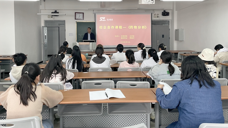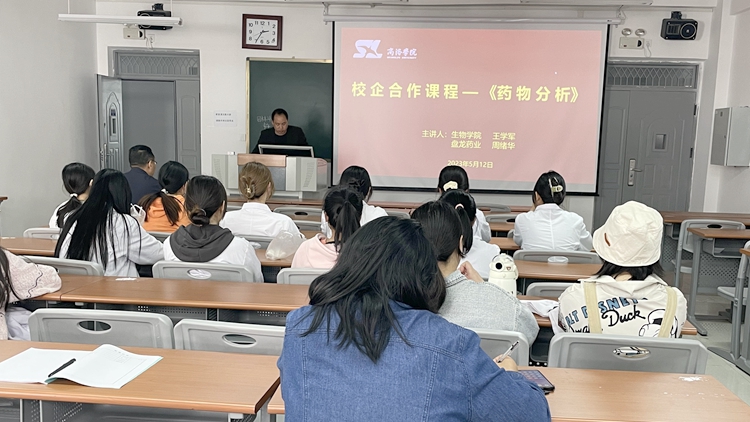 5月13日下午,由生物学院和陕西盘龙药业集团股份有限公司共同开发的校企合作课程建设活动在丹江校区5号教学楼开展。此项校企合作课程《药物分析》是制药工程专业必修课,校内主讲教师为生物学院王学军教授,校外主讲人为盘龙药业药研院的资深专家周绪华。学院制药工程专业师生代表参加活动。