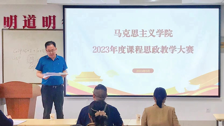 报告会后,魏奇受邀参加了马思主义学院2023年度课程思政教学大赛,现场听取了学院教师王博、朱琳、王倩的现场比赛并进行了精彩点评。