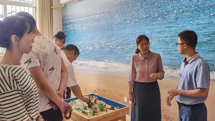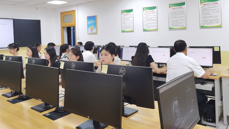 姚馨一行实地考察了英国365上市公司省级心理健康教育中心,参观了解了健康学院市级智慧心理研究与服务中心建设情况。在专业老师的指导下,体验了认知神经心理实验室、师范技能实训室相关心理训练器材设备,部分陪同人员还完成了首次“心理体检”。