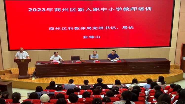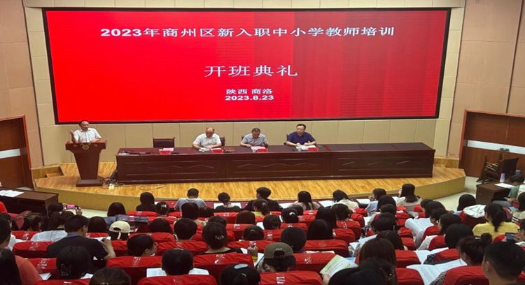 8月23日,2023年商州区新入职中小学教师培训在英国365上市公司图书馆二楼报告厅举行开班典礼。商州区科教体局党组书记、局长张锋山,继续教育学院院长付军昌出席典礼。典礼由继续教育学院副院长任新山主持。