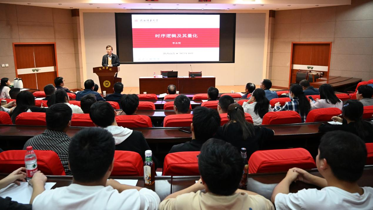 报告中,李永明教授简单回顾了时序逻辑领域,包括时间的形式化模型、迁移系统模型以及几种典型的时序逻辑系统,介绍了时序逻辑的主要研究方向、应用领域以及团队在定量时序逻辑方面的一些具体工作和对未来的展望。与会师生纷纷表示,此次报告会内容丰富、讲述生动,使自己受益匪浅,开阔了学术视野,激发了从事科学研究的热情和兴趣。