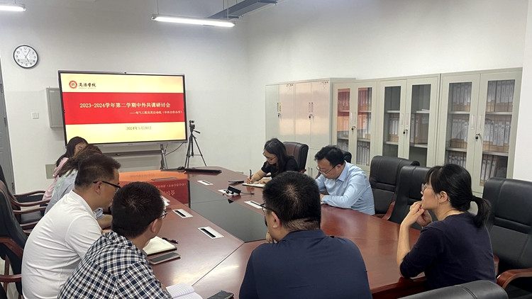 5月20日下午,电信学院在丹江校区召开2023-2024学年第二学期中外共课研讨会。电信学院院长袁训锋,副院长李亚文,外事秘书刘雅雯,外籍教师Shehab Salem以及全体共课教师参加会议。会议由电气系主任张商州主持。