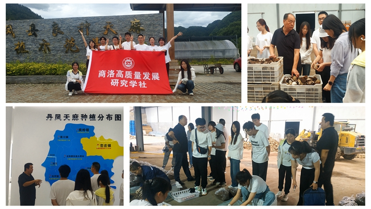 6月21日,陕西高校新型智库商洛发展研究院根植地方团队——旅游品牌助力康养之都建设团队师生一行13人赴丹凤县良种天麻示范园,深入开展“规划设计+良种推广+市场营销”三位一体的助农服务,为提升天麻附加值和产业综合效益建言献策。