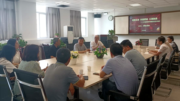 在交流座谈会上,袁祖社教授以《道理会通学理契通义理融通——大学教师的科研规训与学术素养》为题,介绍了当前马克思主义理论学科发展现状,从了解学科背景、树立科研意识、强化专业素养、解决现实问题等方面着眼,与现场教师畅谈了做科研的心得体会,并就大家关心的新质生产力、唯物史观的学理化研究等问题进行了答疑解惑。他强调,理论要积极回应现实和指导解决问题。在做科研的过程中,应该坚持问题导向,主动将现实问题与学科背景结合起来,主动发现和研究真问题,积极做好理论阐释,为构建具有中国特色的哲学社会科学自主知识体系贡献智慧和力量。