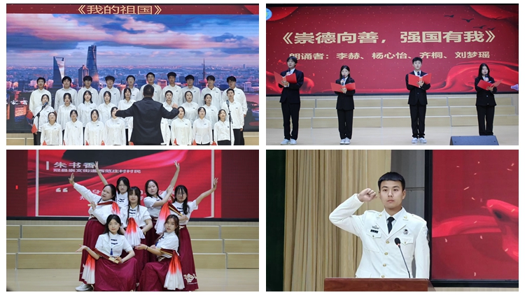 在“诵一段诗词”环节,学院齐桐等人献上诗朗诵《崇德向善,强国有我》,王向煜带来演讲《立德树人守初心,强国有我谱华章》,歌颂道德模范们坚定的理想信念、不懈的奋斗精神。学习完道德模范事迹视频,经管学子通过舞蹈《万疆》,用最浪漫的方式表达了对道德模范的崇高敬意。退伍学生代表杨振兴带领全体同学郑重宣誓,承诺以奋斗的青春担当强国重任,书写无愧于时代的华章。