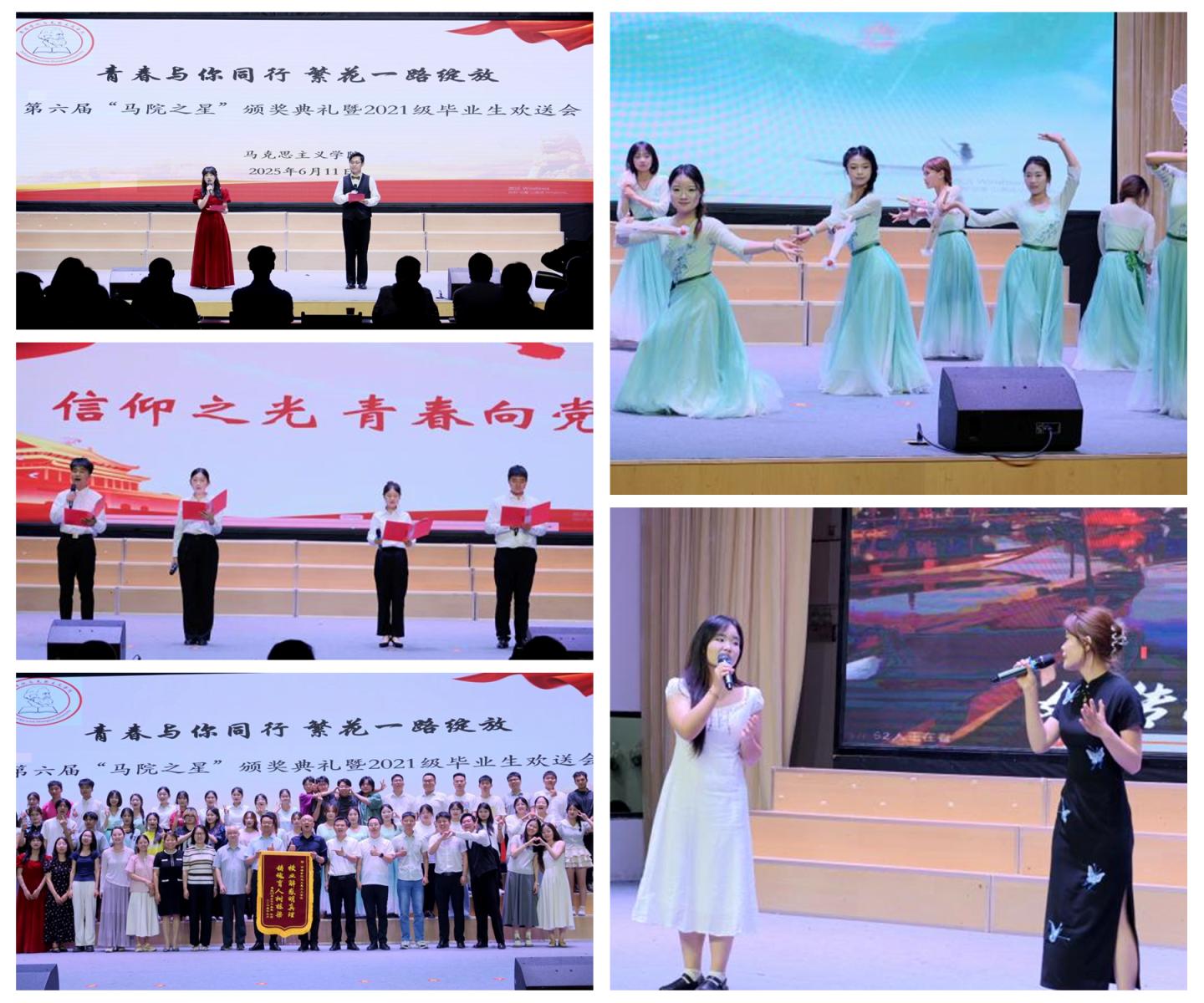 6月11日,马克思主义学院在新青年大学生活动中心举办“青春与你同行 繁华一路绽放”第六届“马院之星”颁奖典礼暨2021级毕业生欢送会,学院师生齐聚一堂,为即将踏上新征程的2021级毕业生送上祝福。