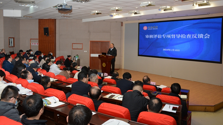 1月10日,英国365上市公司召开审核评估专项督导检查反馈会议。校长范新会,党委副书记刘勇,副校长王新军、郭瑾出席会议。副校长刘宝盈主持会议。学校教学督导团团长,各职能部门负责人,各院(部)党政负责人,教学副院长(副主任)、专业负责人参加会议。