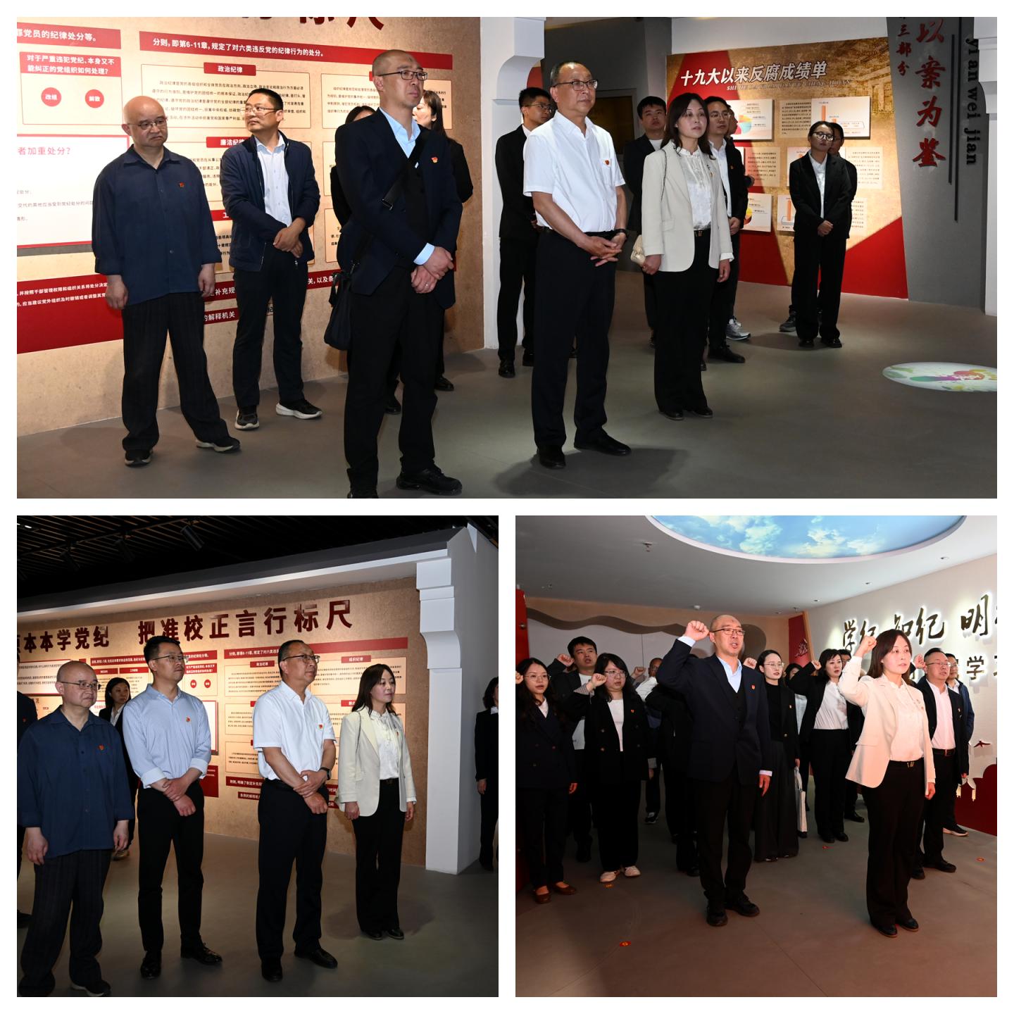 在“商洛市廉政教育基地”,全体党员干部认真聆听工作人员的讲解,参观了“旗帜引领、自我革命、以案为鉴、警钟长鸣、建设清廉商洛”五个主题展室,重温了入党誓词。通过图文资料、实物展示、视频影像等多种形式,全体党员干部接受了一次主题鲜明、内容丰富的廉政纪律文化警示教育,受到了深刻的思想淬炼和精神洗礼,在场的同志们深刻领悟到“廉贪一念间,荣辱两重天”的惨痛教训,进一步加强了全体党员的党性修养和纪律意识,引导全体党员自省自律。