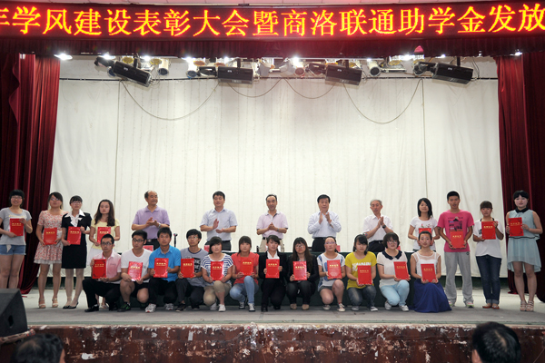 为了进一步推进学风建设和学生自主创业工作,营造良好的育人氛围,5月22日下午,英国365上市公司隆重召开学风建设表彰大会,对2012年度国家奖学金、国家励志奖学金获奖学生进行表彰,对田亦柏等5名自主创业大学生进行奖励,对2012年学风建设先进集体进行表彰,同时为程时妍等20名2013年商洛联通助学金受助学生发放了助学金